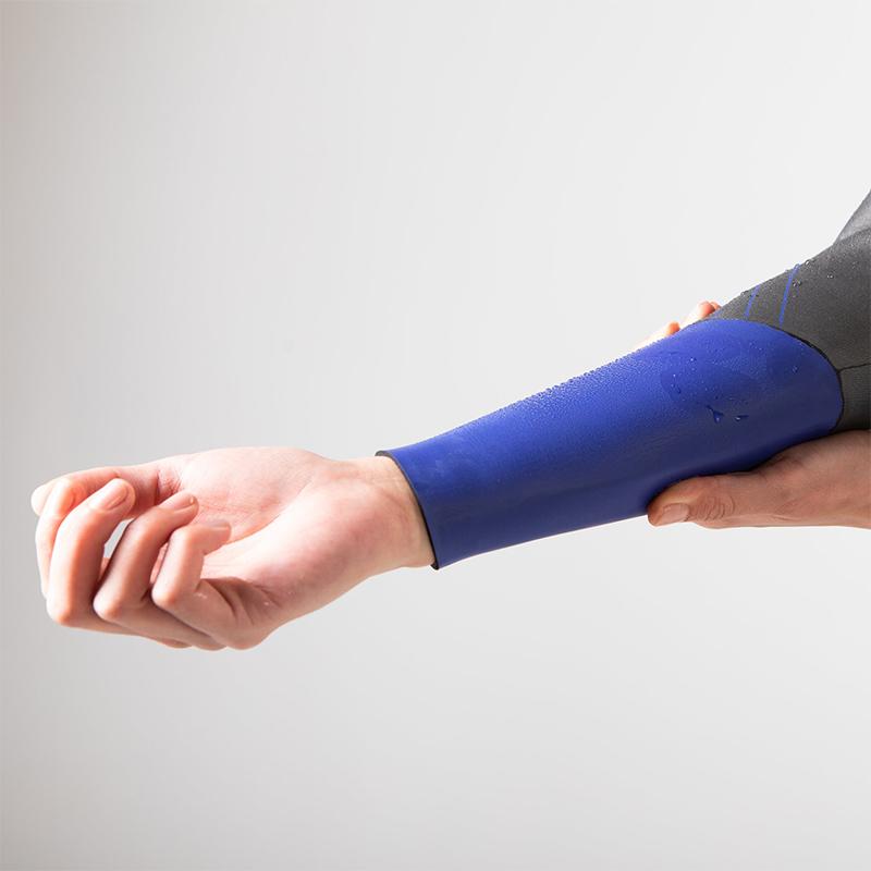 A massive 480-580% in elongation, compared with human skin (underarm) which is just 60-70%. Superior flexibility and comfort with an expansion of 7x conventional wetsuit materials.