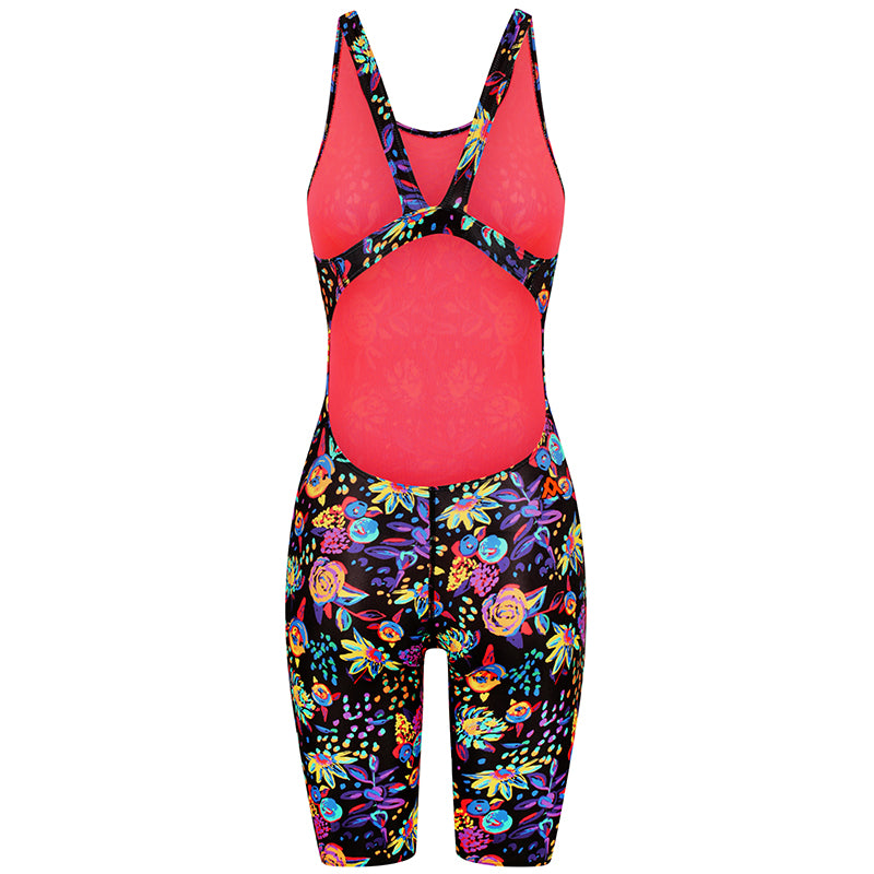 The AMANZI Bloomfields Kneelength swimsuit, is the perfect entry-level racing swimsuit that is also ideal for training. Designed to cater to the needs of competitive and active swimmers, triathletes, and open water swimmers, the Kneelength boasts wide shoulder straps and a back band that are strategically placed between the shoulder blades for maximum freedom of movement and added support to the bust area. Featuring a wide open back that follows the natural contours of the body, this swimsuit provides an ergonomic fit and superior comfort. The leg height sits approximately 5cm above the knee, for a comfortable fit. Take your swimming to the next level with the AMANZI Kneelength swimsuit - a reliable and comfortable choice for both training and racing.