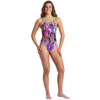 Get ready to rock the pool in the AMANZI What a Hoot! One Piece. This suit is a fresh and fun explosion of neon lime, grape, and rose with the forest coolest punk rock owls! Stand out from the crowd in this one of a kind swimsuit.