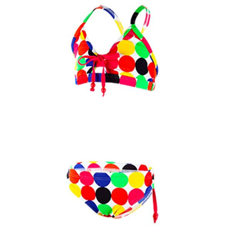 A firm fitting triangular top with gather detail and beaded ties matches back with a hipster brief with side gathering for a fresh beach bikini look. Front lined and with a drawcord brief, it is perfect for catching waves and jumping in the pool.