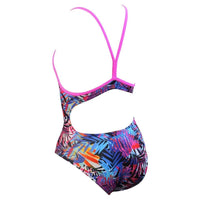 Featuring a delicate geometric print in shades of blues and purples and brought to life through silver foil, the Techno Prism Swift Back is the ideal costume for the swimmer who wants a stylish, sporty costume.